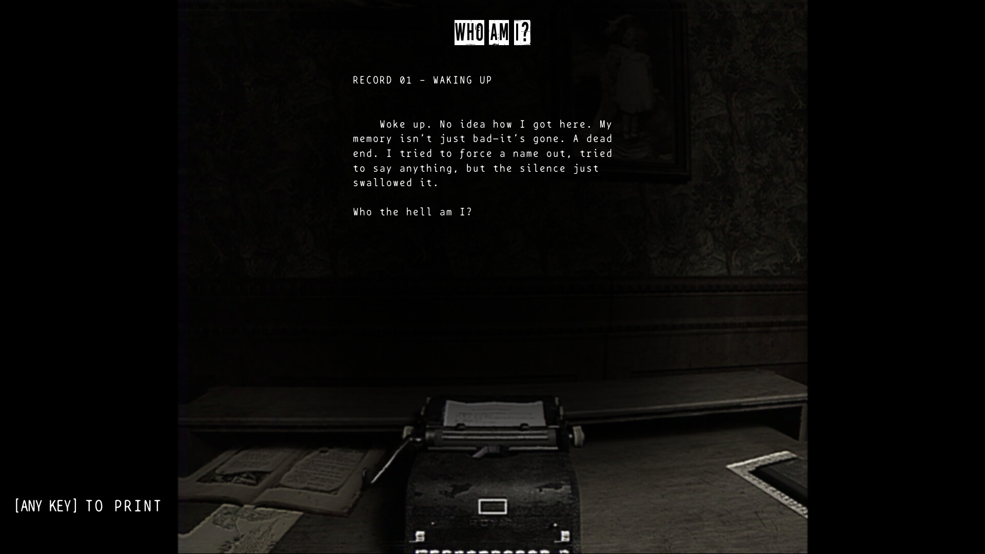 你在一样空荡荡的房子里醒来。没有名字,没有过去。只有一台旧相机、一台打字机——以及一种感觉:这个地方已经知道你接下来要去哪里。