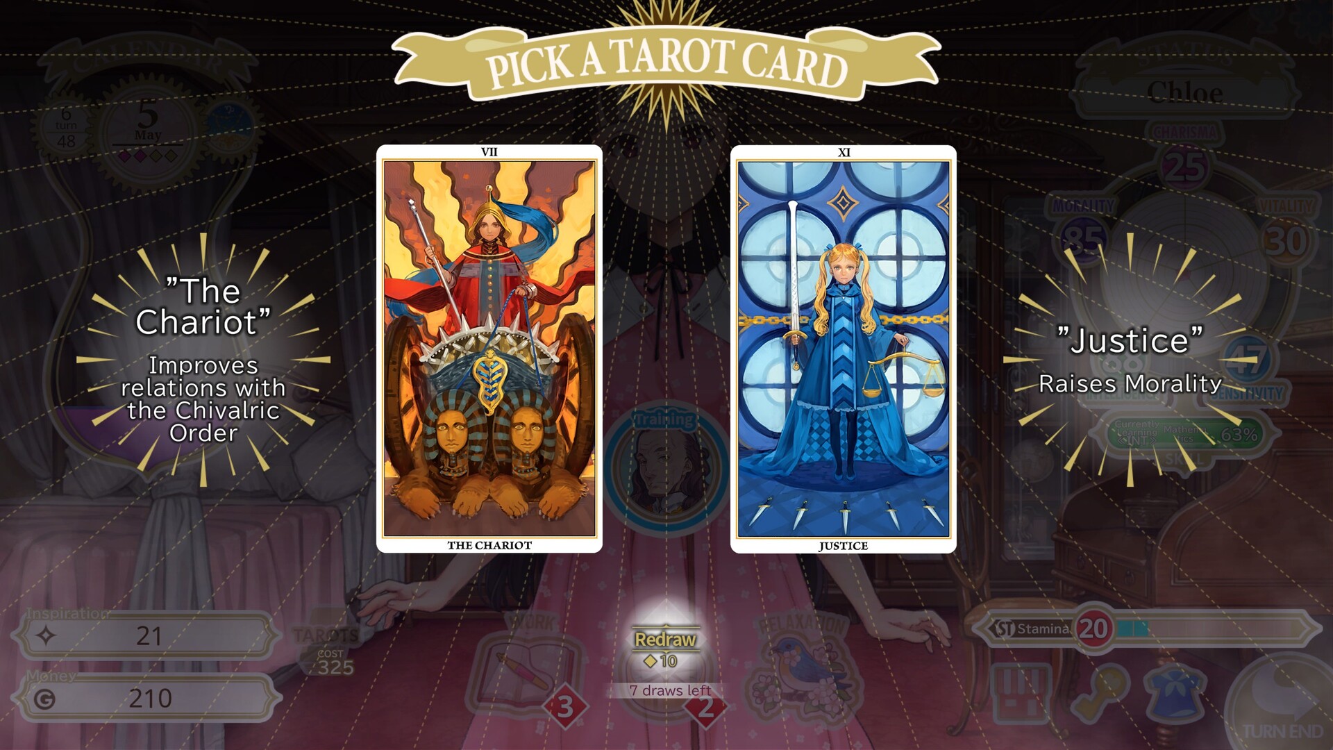 - 消耗游戏中积累的”灵感”抽取塔罗牌,每张牌都拥有独特效果
